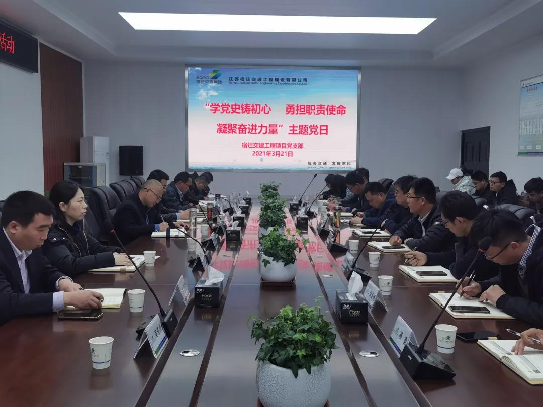 3月21日,宿迁交建工程项目党支部在省道268项目部会议室召开“学党史铸初心 勇担职责使命 凝聚奋进力量”主题党日活动。