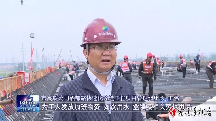 高铁公司酒都路快速化改造工程项目管理组组长王伟说:“为工人发放加班物资,如饮用水、盒饭及相关劳保用品,同时适当提高伙食标准,及时发放劳动报酬,切实保证工人的劳动权益。”