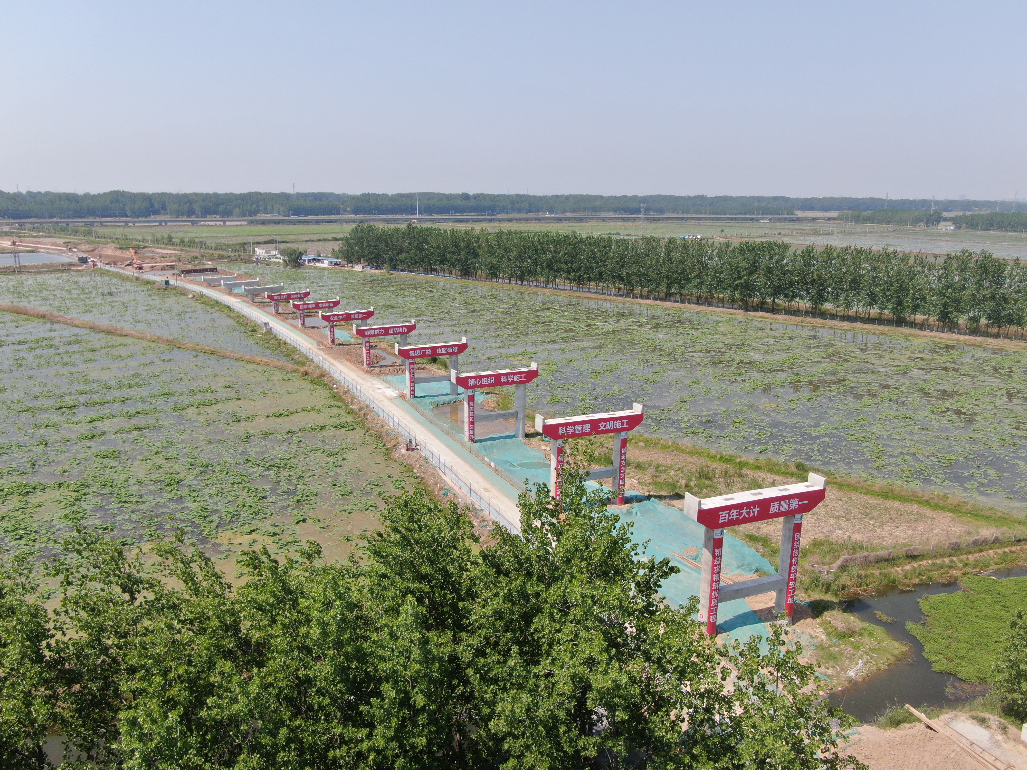 该项目全长11.4公里,跨越京杭大运河,下穿宿淮铁路,是沟通宿豫区、市洋河新区与泗洪县的重要通道,计划2023年6月底完成全线通车目标。
