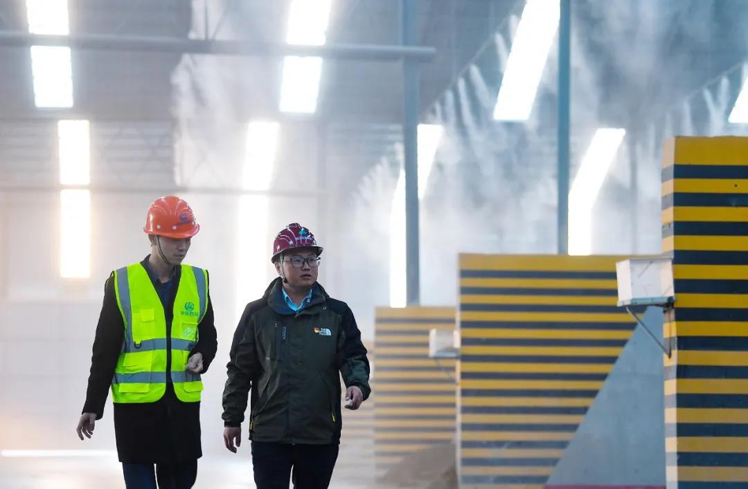 在灰土拌和站及料仓大棚全面安装智能喷雾系统,高压雾化设备将水雾化喷出,迅速与空气中的粉尘颗粒融合,有效控制扬尘污染。