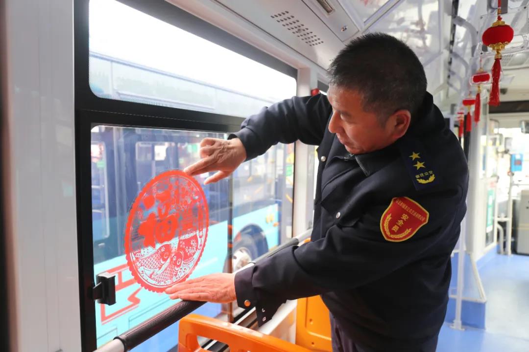 “这个灯笼再挂高一点,大红灯笼高高挂才好”“这个窗花真漂亮,往车窗上一贴立马喜庆了不少”“虎年接续奋斗,看我虎虎生威”......小年刚过,新车驾驶员们立即忙活起来,盛装打扮自己的“公交兄弟”,贴窗花、悬灯笼、挂福袋有条不紊,每位驾驶员都尽心尽力把自己的车辆装扮到最美,让市民一上车就能感受到节日的温暖。