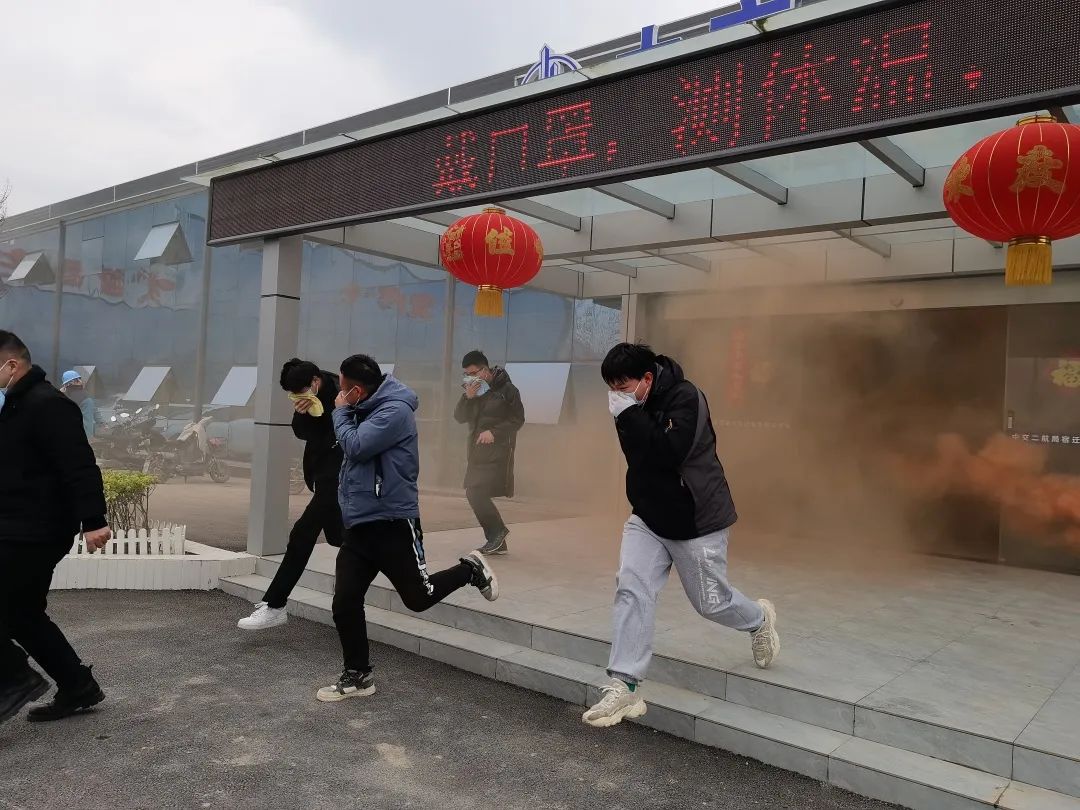 各演练人员在管理员的指挥下,迅速进入紧急疏散状态,建设者们用湿毛巾捂住口鼻,弯腰俯身,按照预定路线迅速前往集合地点,过程中没有出现拥挤、踩踏等安全事故。到达安全地点后,后勤保障组及时维持好秩序并清点人数,确保无一人遗漏;警戒疏散组对所有出入口进行警戒封闭,避免外部人员误入;医疗救援组将受伤人员转移到安全空地对其进行紧急救护,同时,抢险救援组其他人员使用消防器材灭火。最后事故调查组进入已确保安全的火灾现场调查起火原因,随后将调查结果上报应急救援总指挥,总指挥充分了解现场情况,等待安全隐患排除后解除警报,宣布演练结束。