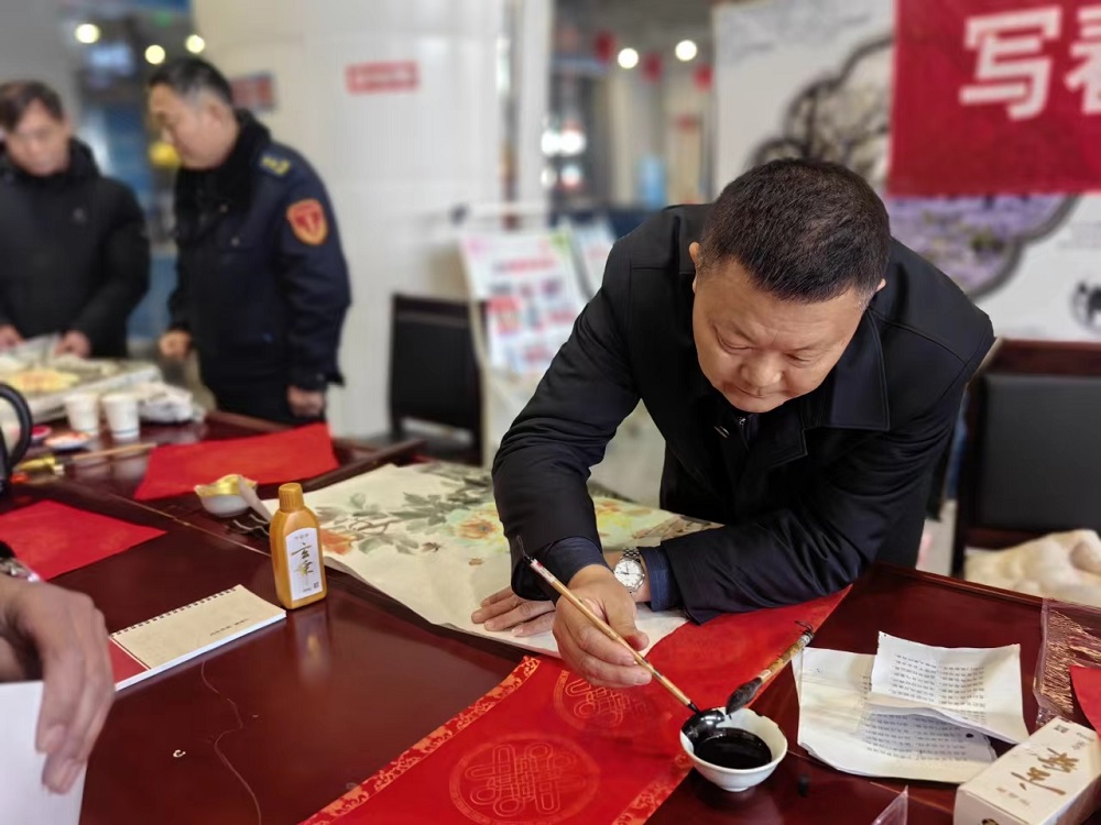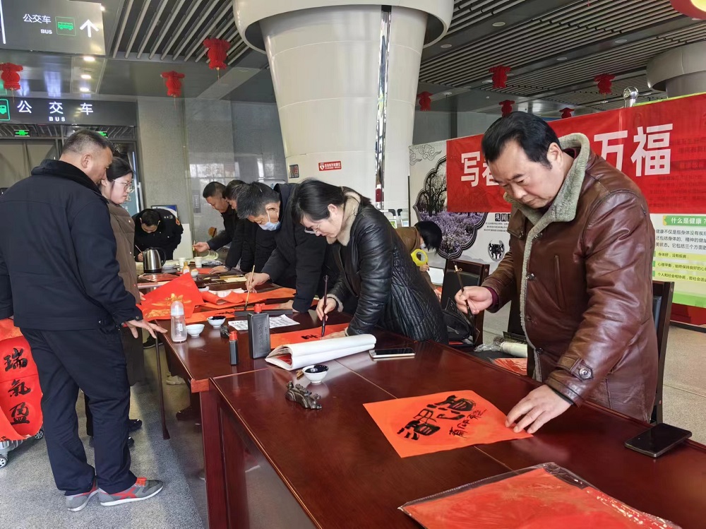 为营造和谐、欢乐的春节氛围,进一步丰富职工文化生活,推进金都娱乐城建设,2月7日,公交公司组织开展“翰墨飘香迎新春 手写对联送祝福”活动,公司书法爱好者为市民、职工书写春联,赠送“福”字。