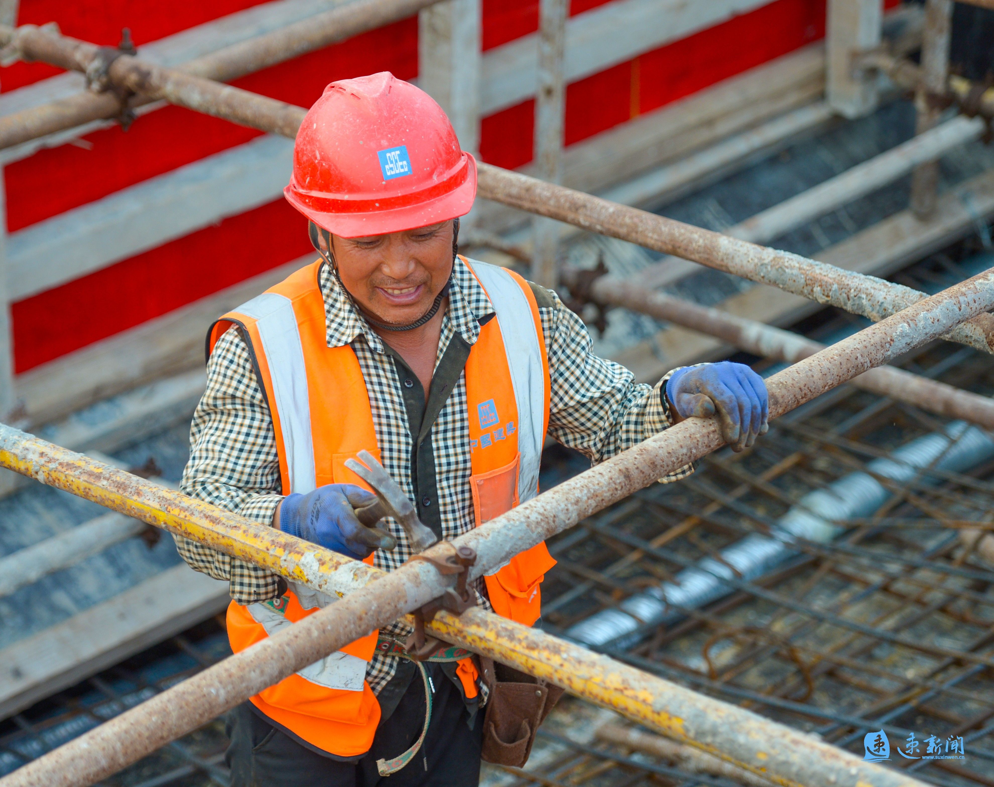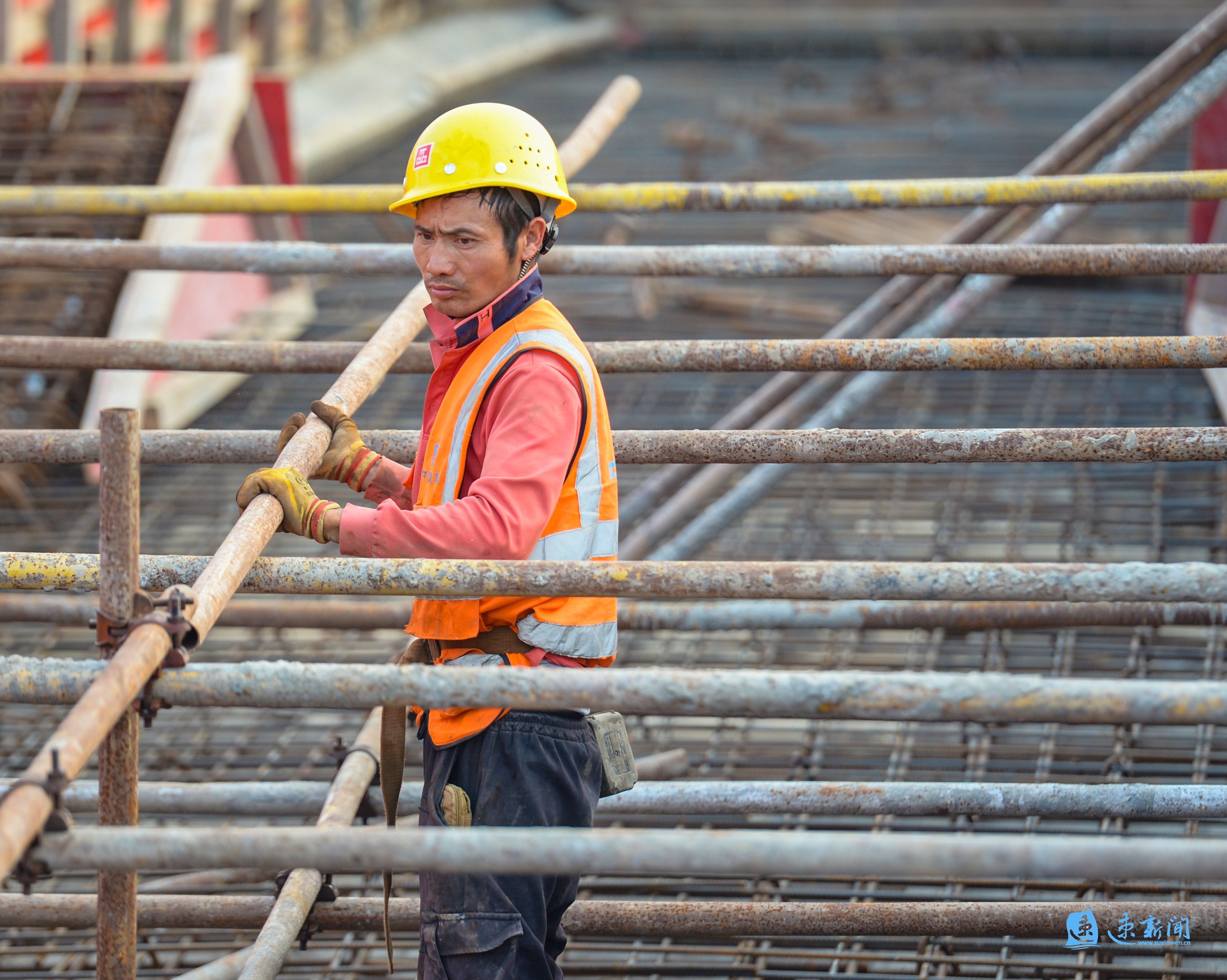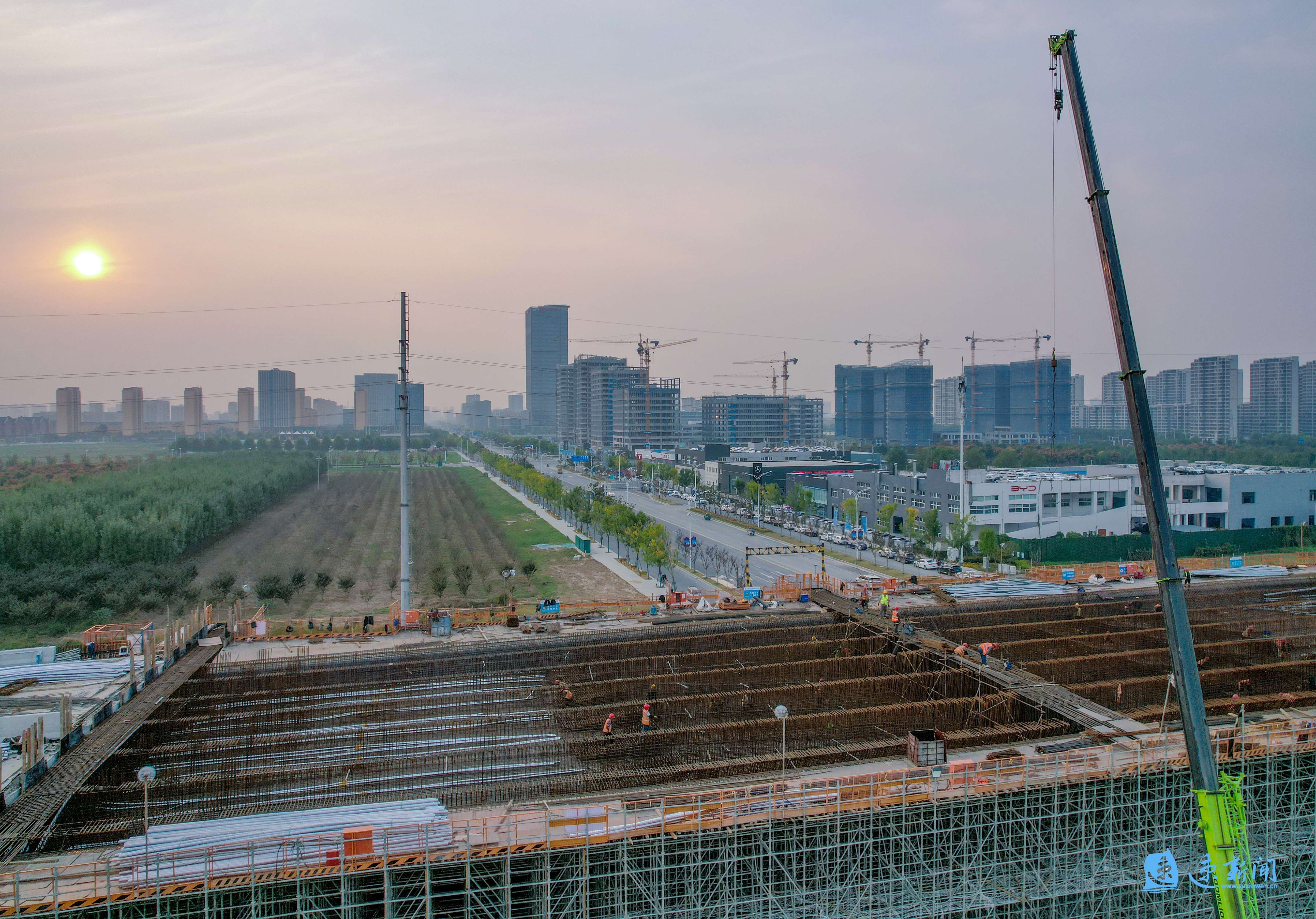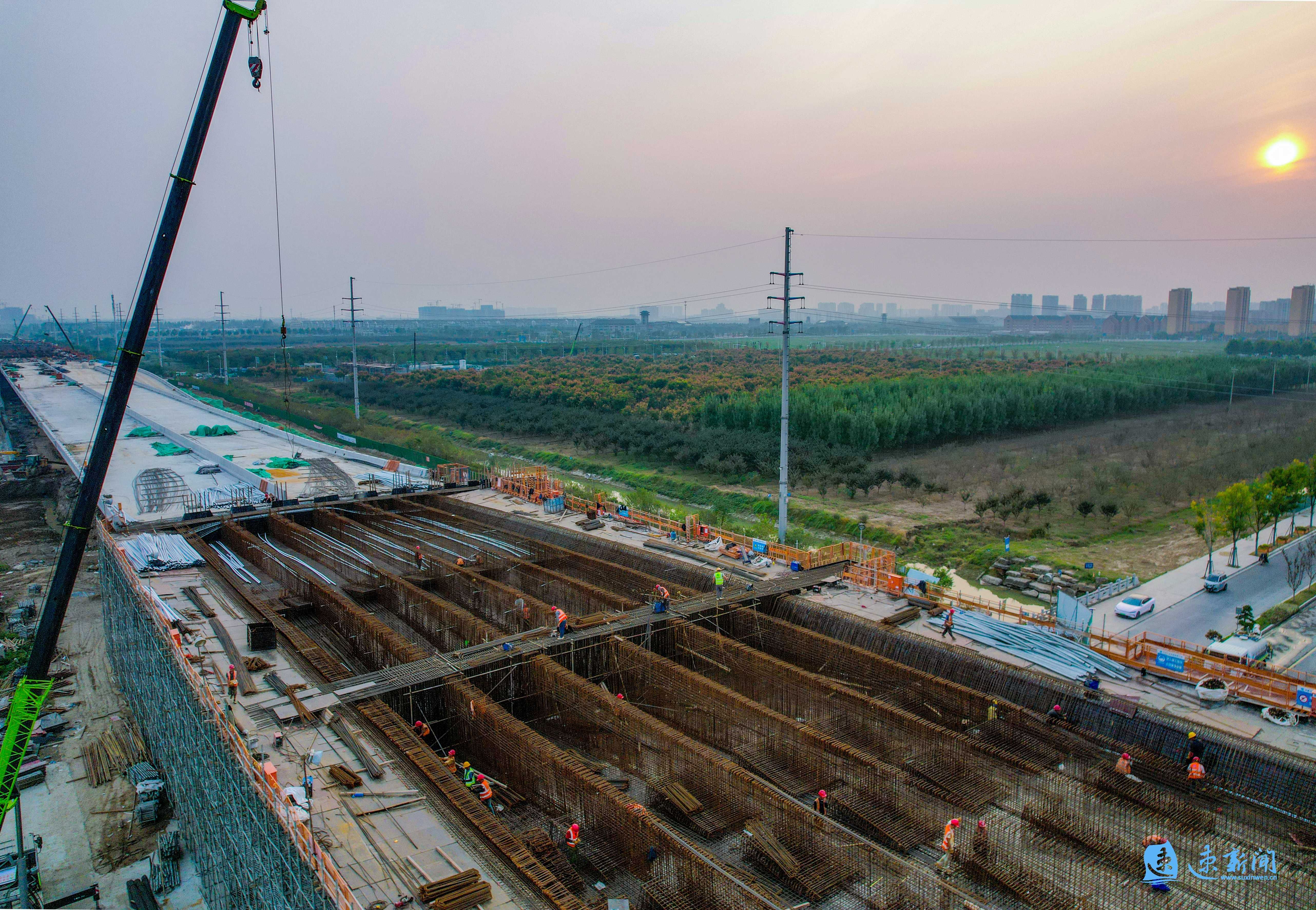 10月15日,在宿豫区酒都路快速化改造工程现场,施工器械不停运转,工人正在紧张施工,一派热火朝天的景象。