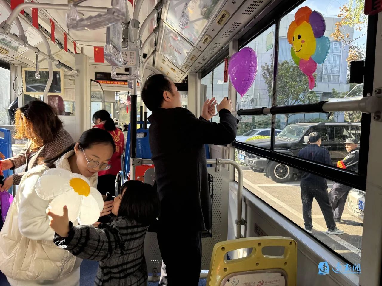 车窗被缤纷的气球“占领”,车身贴着“可爱宿迁 让爱童行”的标语……11月23日下午,宿迁市人民大道群众大厦的院子里停放了一辆儿童友好公交巴士,等待着孩子们用爱和童趣装点它。