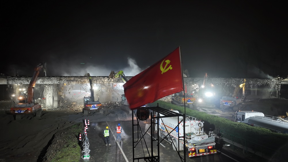 作为沪武高速改扩建项目的控制性节点,该匝道桥拆除面临交通组织复杂、周边环境敏感等多重挑战。项目部通过科学制定施工方案,积极协调交管部门及地方政府,并提前做好周边居民沟通工作,确保施工安全有序推进。施工期间,党员先锋队全程驻守现场,强化安全与质量管控。
