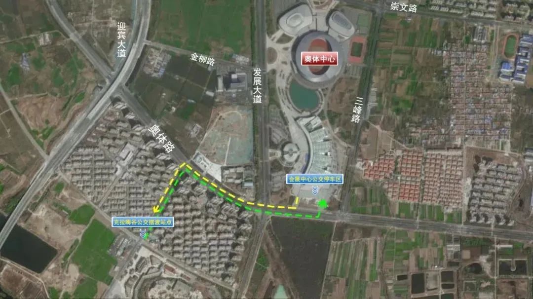 克拉嗨谷停车区公交摆渡线路:克拉嗨谷西门--奥体路--会展中心(双向摆渡)