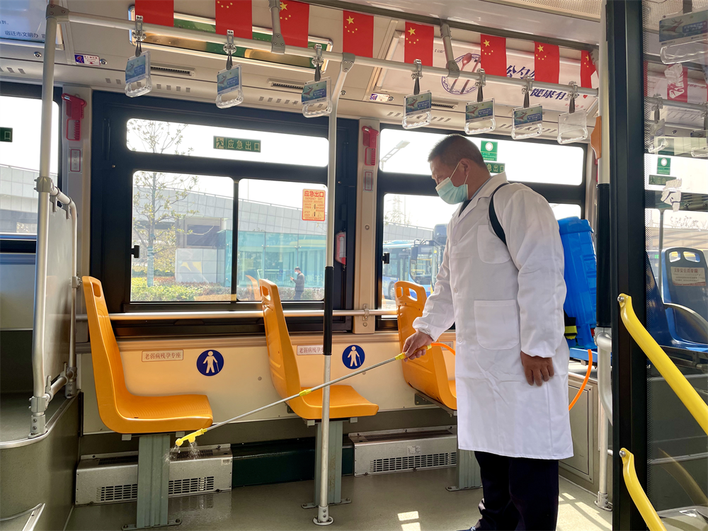 公交公司严格落实营运车辆和场站重点部位消杀工作,坚决做到“一趟一消毒,行车中通风”,发车前对驾驶员进行体温测量并登记造册,做到源头预防、有迹可查;营运中驾驶员对乘客进行体温测量并查验“两码”、提醒其佩戴好口罩,为保证广大市民安全出行保驾护航。