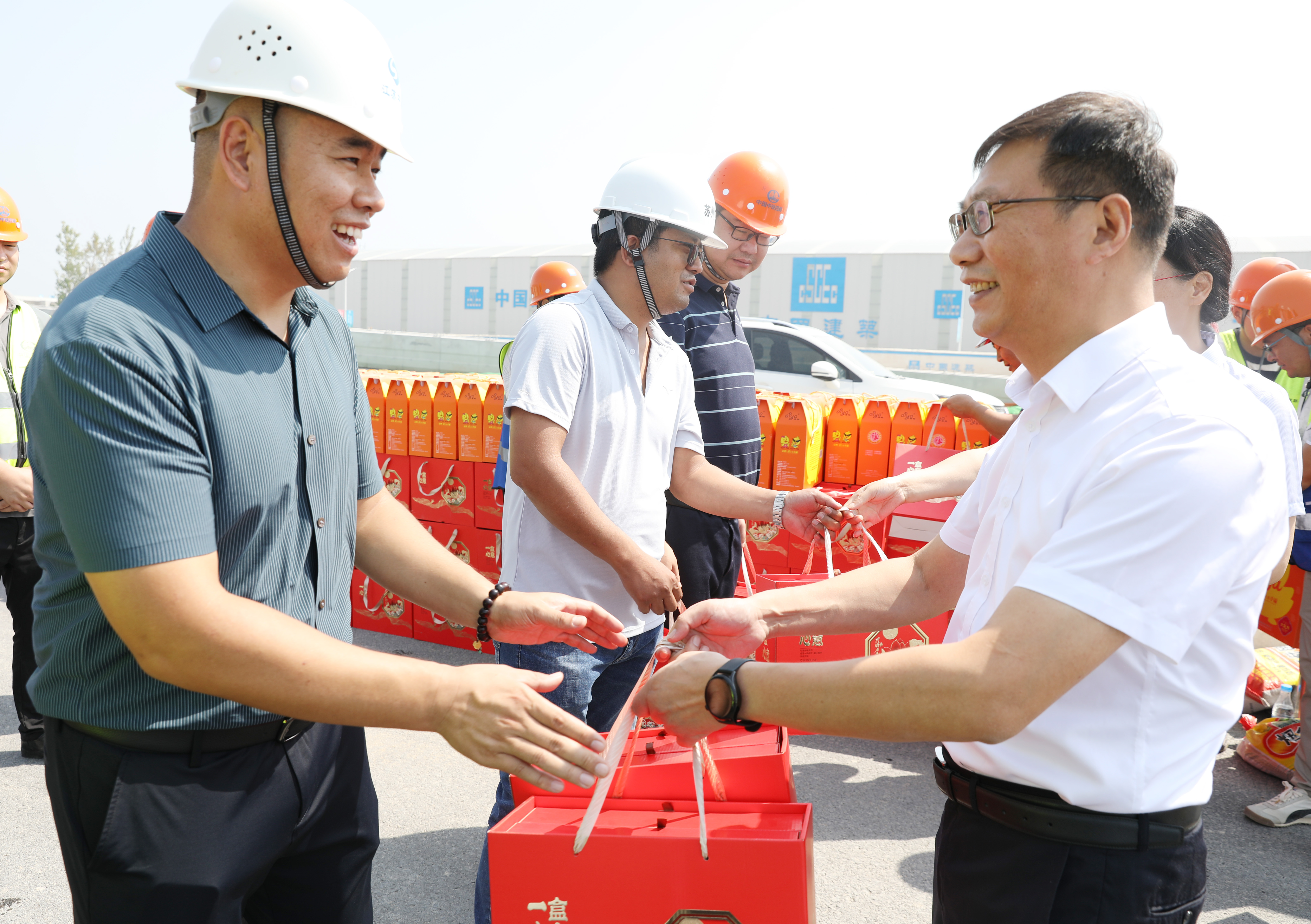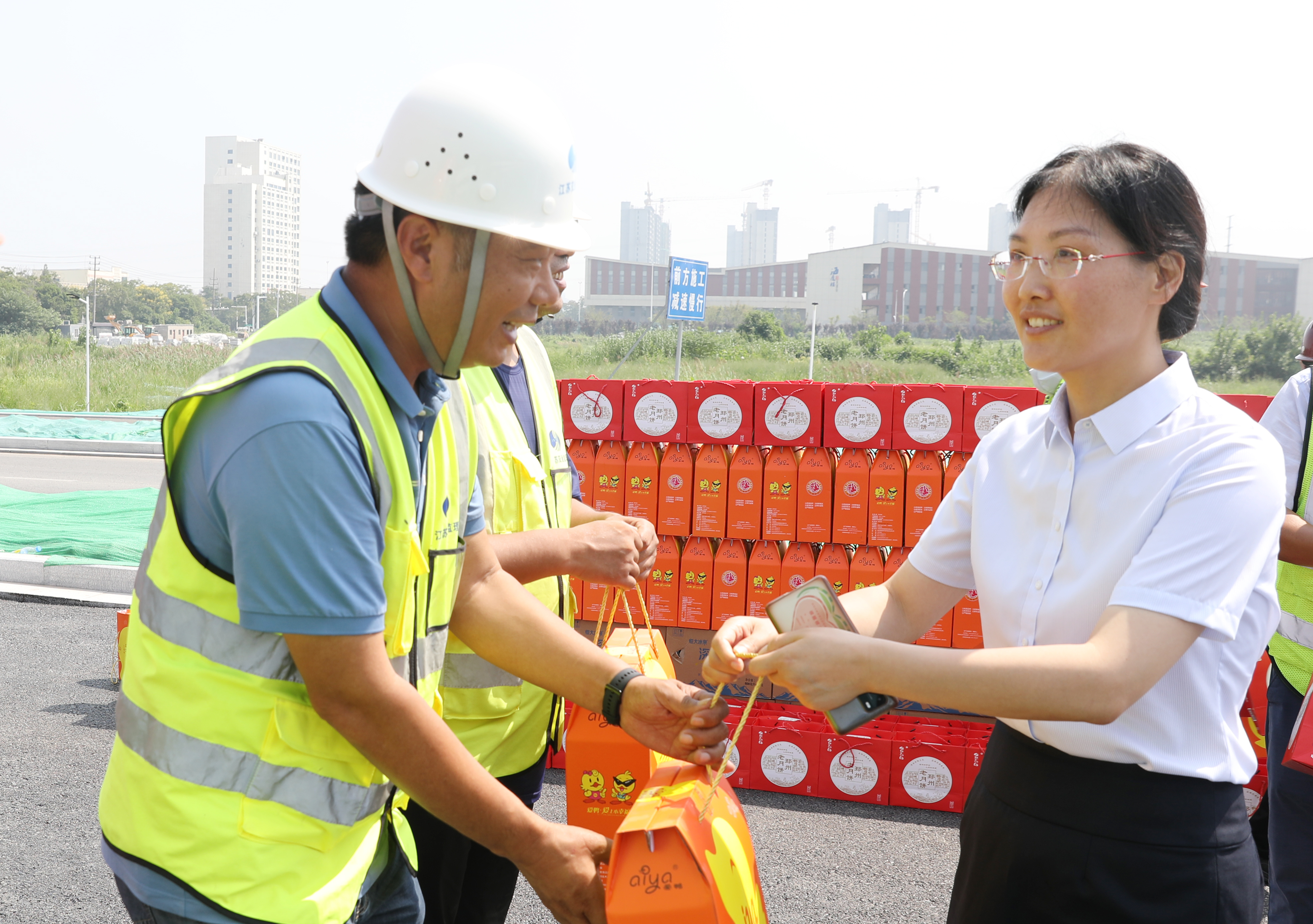 慰问期间,史明霞、邵岩一行与施工人员亲切交谈,询问施工人员生活和工作情况,同时,为大家送上月饼等传统节日食品,感谢他们为项目早日建成投入使用而连续奋战,对他们不畏辛苦、坚守岗位、勇于奉献的精神给予了高度赞扬,并叮嘱他们要扎实做好节日期间安全生产工作,加强值班值守,度过一个平安祥和的中秋佳节。