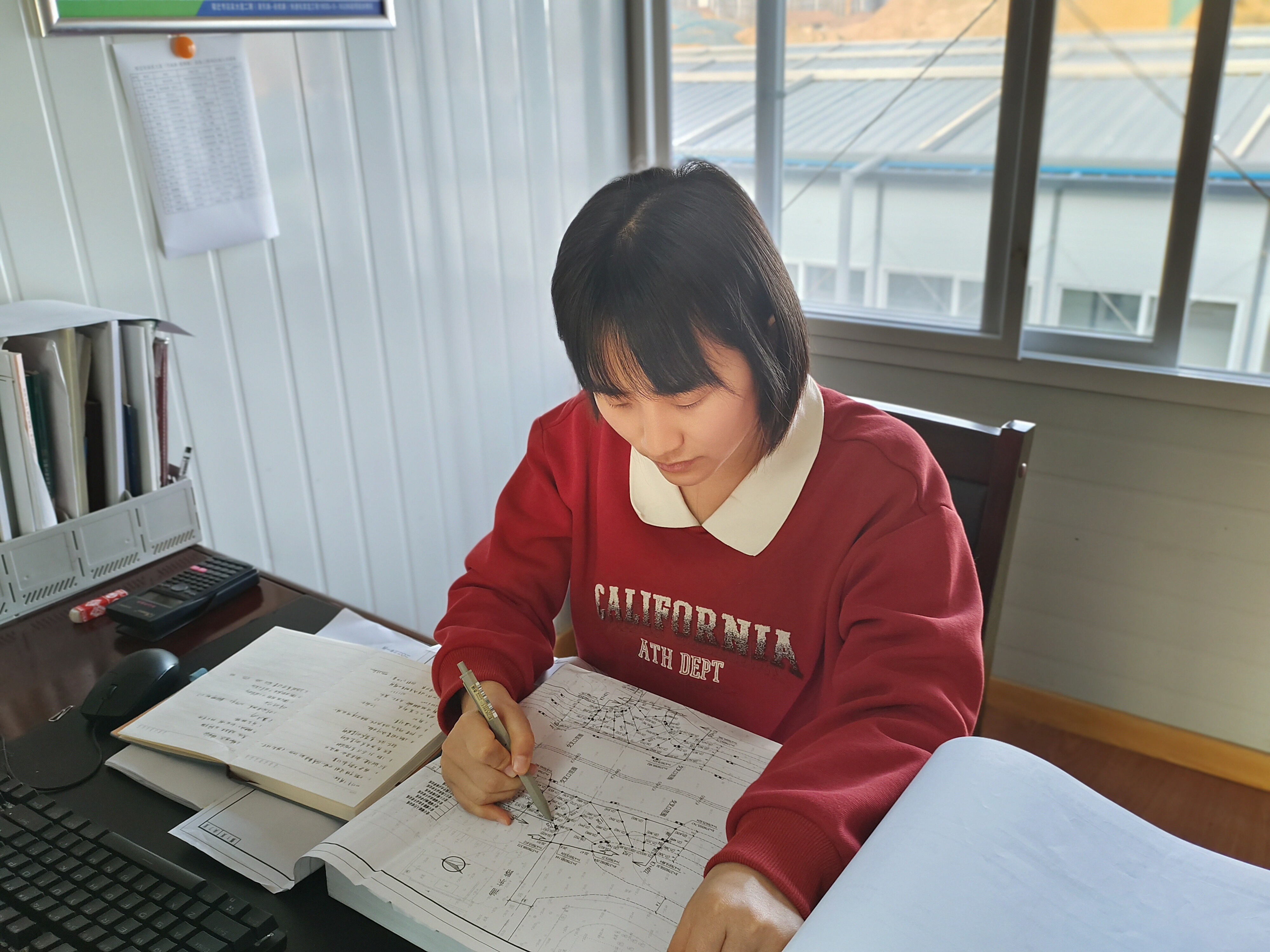 工作中的她,一丝不苟,柔弱的身躯里藏着一颗强大的心,时刻牢记工作原则。每次项目伊始,她始终奋斗在施工现场的一线,务必使得每一个施工环节达到规范标准。“干施工,必须要仔细认真,在工作中,所到之处不能带有任何疑点,这是对我们工作的负责,也是对他人工作的负责。”