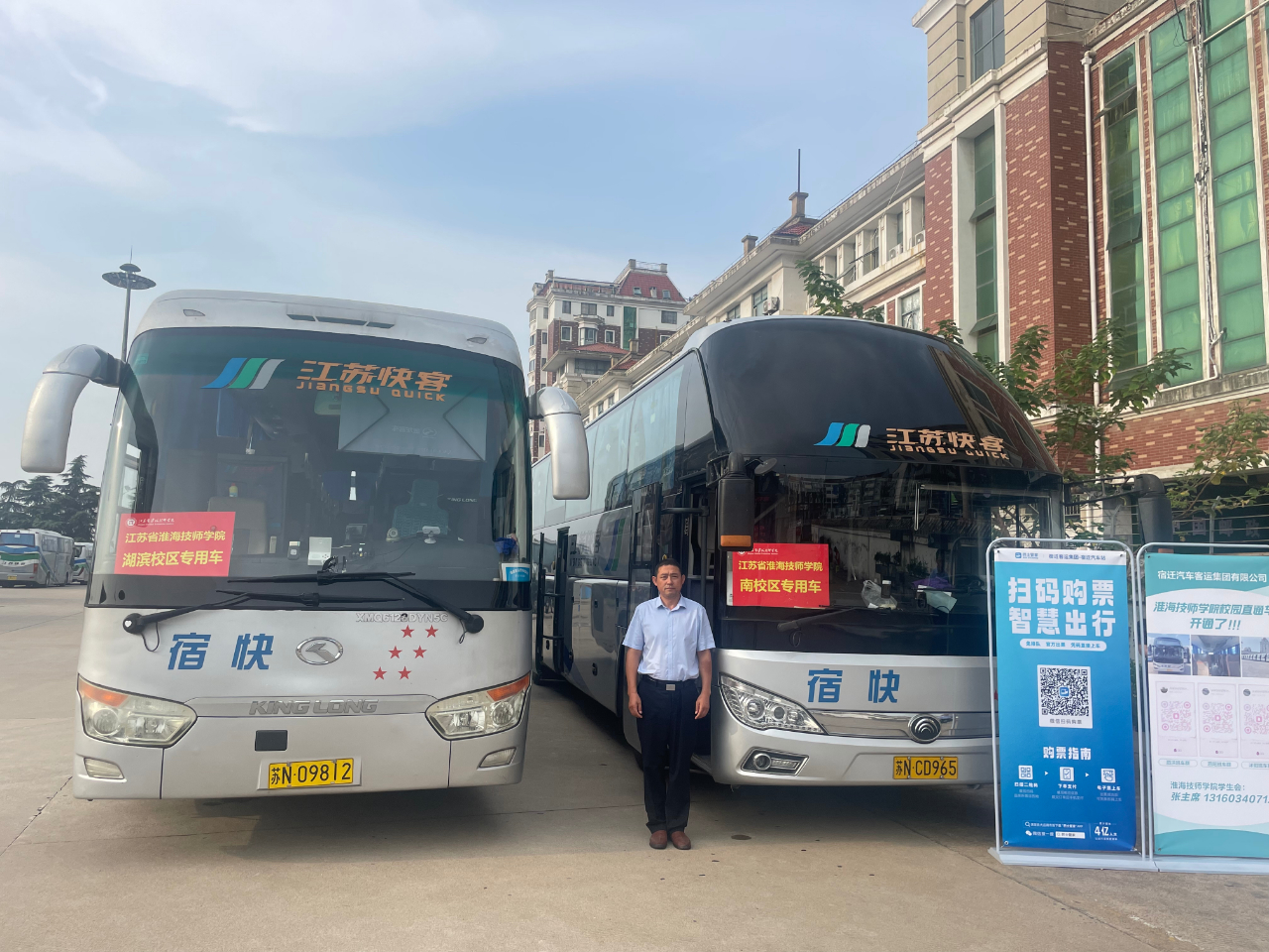 宿汽集团将本次活动作为“党建+民生”重要项目,积极为新生打造“一站式”报到服务。围绕“党建提服务、服务促党建”工作思路,以党员干部为主力,提前对接学校,在站场出站口设置迎新点,在学生落地后由校园直通车从宿迁汽车客运站、高铁宿迁站等地直达学校门口,再由学校志愿者引导至学校报到,与学校志愿者一道协同配合、以心迎“新”,确保本次迎新工作隆重热烈、安全文明、服务周全。