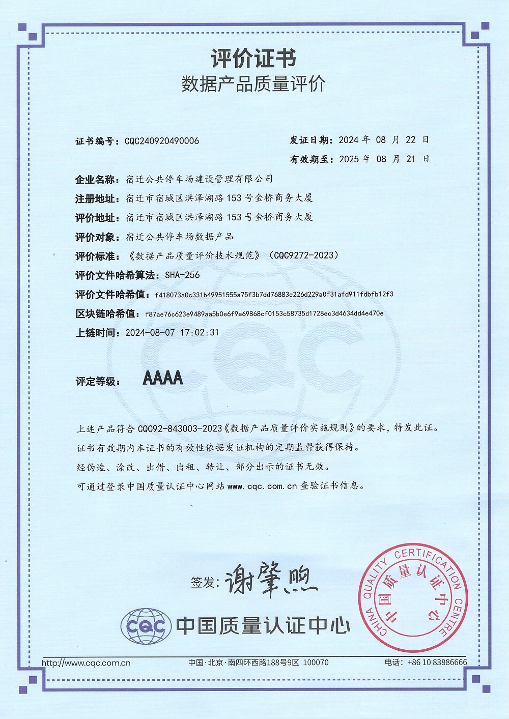 所属企业宿迁市交通科技发展有限公司完成全市首个数据资产入表工作,数据资产入账价值达400万元,评估价值逾2300万元。经中国质量认证中心认定,该数据产品质量等级为AAAA级,为宿迁首张AAAA级证书,也是江苏第二张AAAA级证书。
