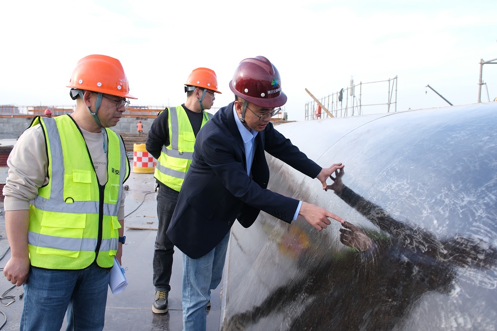 为什么节日不能放假?司汉举了一个很好的例子,就在节日当天的施工过程中,现场负责人发现一条与港城路方向垂直交叉的管道,和承台施工位置冲突。