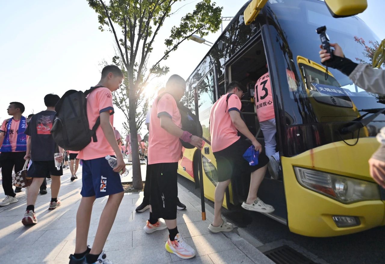 新闻特写|球迷专列到站,18辆定制公交无缝接驳!