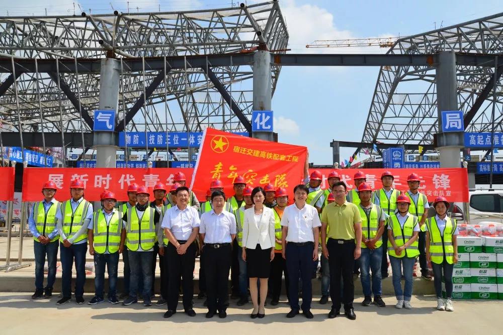 6月27日下午,团市委书记耿晓云及部分团干部代表来到宿迁高铁综合客运枢纽项目建设现场,走访慰问高铁一线青年职工,并为金都娱乐城 高铁配套工程青年突击队授旗。