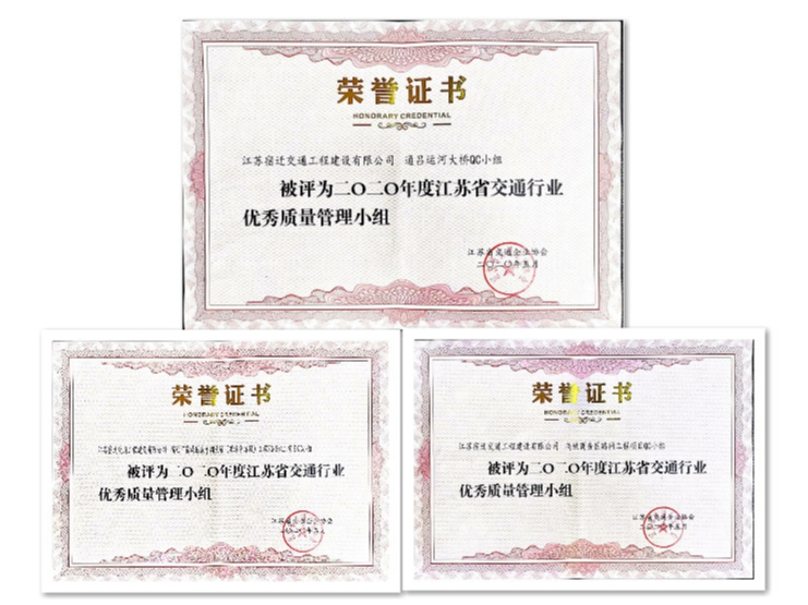 今年以来,宿迁交建获得2017-2019年度宿迁市文明单位、宿迁市三八红旗集体、宿迁市劳动竞赛有功集体、省交通协会质量信得过班组等荣誉称号,通过绿色公路发展研发中心认定,1项科研成果经行业部门成果鉴定为“国际先进”,1项团体标准获省交通企业协会立项。