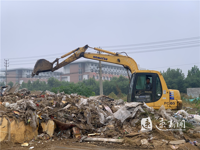 10月2日下午阴雨连连,在黄河故道文化公园项目处,挖掘机正在清理现场建筑垃圾,这个9月29日新开工的项目即将在国庆期间迎来自己的项目。
