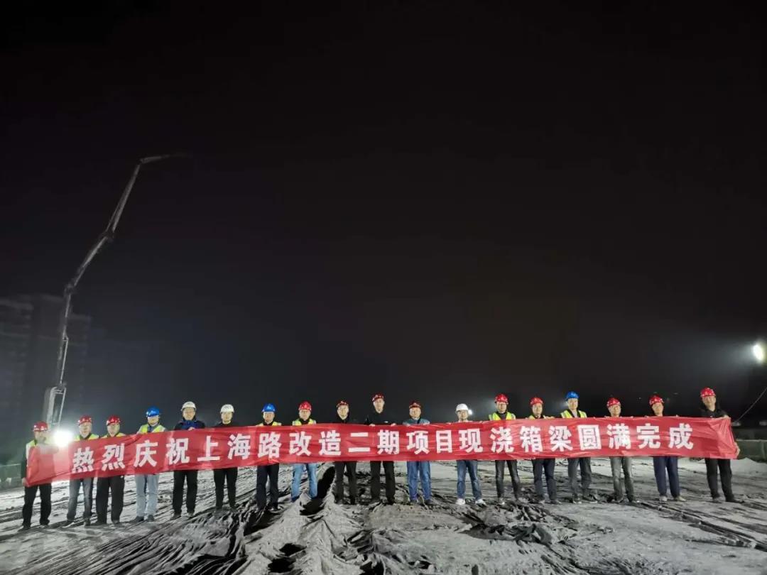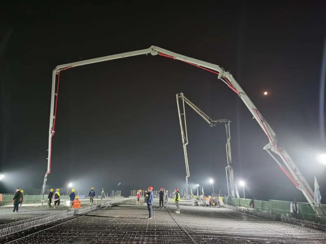 11月2日凌晨3点18分,上海路(高铁站连接线)改造二期工程完成最后一次现浇梁浇筑施工。本次顶板浇筑计划浇筑1150立方米,实际浇筑1149立方米,耗时13小时。