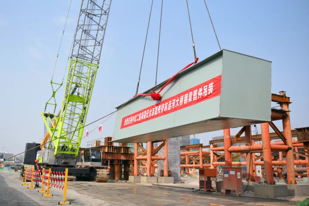【高铁公司】北京路快速化改造工程跨京杭运河特大桥首节钢梁顺利吊装