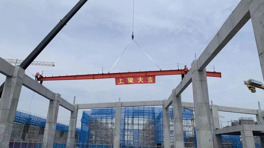 【通湖物流园】“钢”立天地,“构”筑未来,江苏通湖物流园二期工程屋面首根钢梁吊装完成