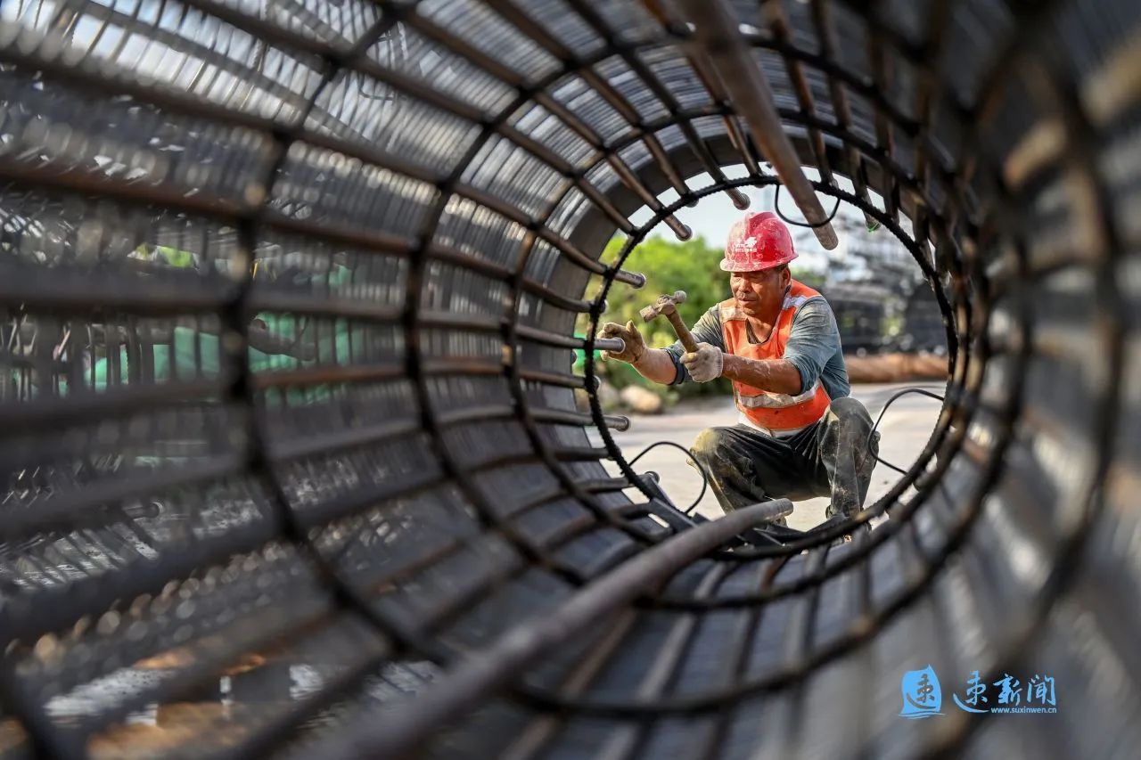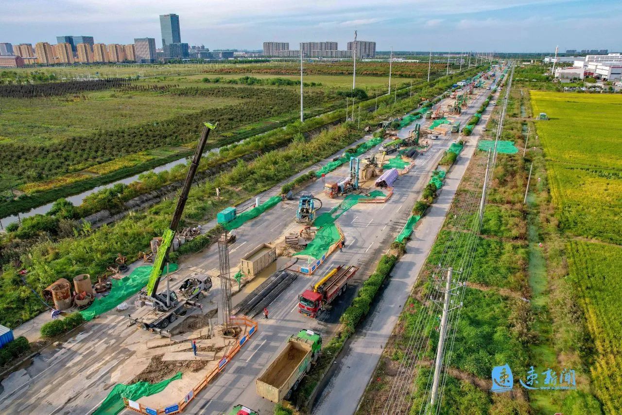 10月4日,在宿迁市张家港大道一期快速化改造工程现场,工人们在紧张施工。据了解,该项目全长约5.6公里,建设内容主要包含道路、桥梁、排水、照明、监控、景观绿化及标志标线等工程。国庆假期里,宿迁市重点工程不停工,建设者坚守岗位,开足马力,确保项目早日建成投入运营。来 源:速新闻