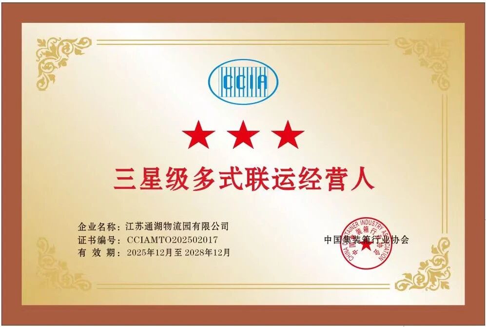 近日,中国集装箱行业协会公布了第五批多式联运经营人等级评估结果,江苏通湖物流园有限公司成功获评三星级多式联运经营人。