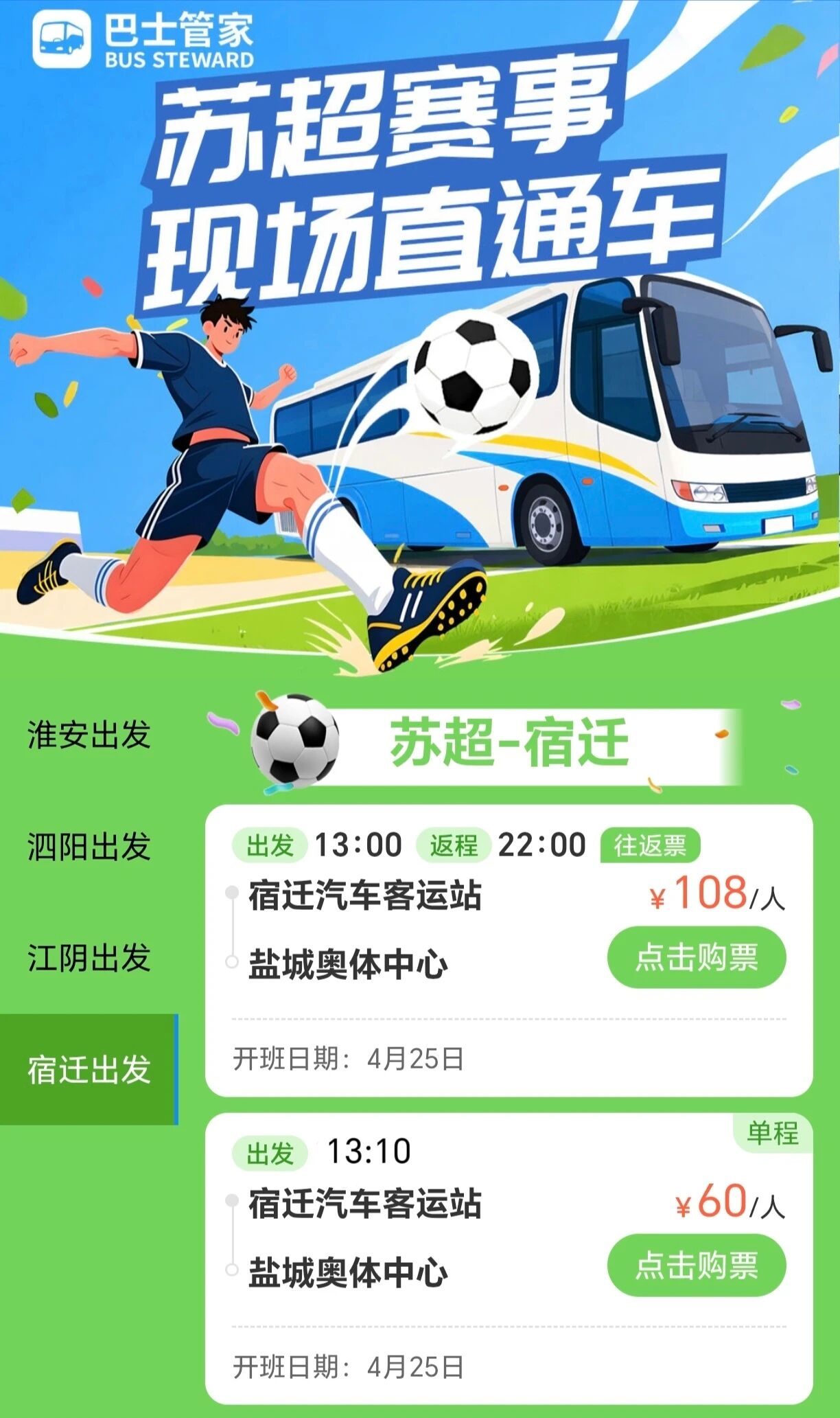 宿迁至盐城奥体中心赛场直通车