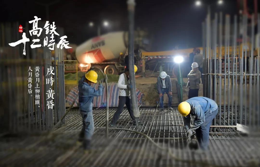 高铁十二时辰我们和梦的距离有多远? 高铁十二时辰 有人说:梦,遥不可及。 宿迁高铁建设者:不! 触碰到梦,我们只需要“十二时辰” 421根灌注桩、 68个承台、68个墩身、 20联现浇箱梁, 附属道路:500根灌注桩、 118个承台、120个墩身、 29联现浇箱梁、12联钢箱梁 ······ 铺设了通向高铁梦的快速路。 一点点揭开高铁梦的面纱。 带你去看追梦之旅 /23:00~1:00/ 子时·夜半 盛夏夜里,没有一丝凉意,高铁建设一线,依然灯火通明。工地的“狂欢”即将开始。 /1:00-3:00/ 丑时·鸡鸣 夜色茫茫,万籁俱寂,轮班制避开了夏日的酷热,建设者们短暂休憩后全力投入工作去,高铁建设狂想曲,已然开始。 /3:00-5:00/ 寅时·平坦 工程边上农家的大公鸡已打早鸣,建设已经到了冲刺阶段,这是宿迁人的高铁梦,造梦是件大事,我也参与其中,以后就能告诉家里的娃娃,“这路你爹也修过!赛不赛?” /5:00-7:00/ 卯时·日出 衣服可以不用每天换,但是班前安全例会不可少!安全第一,开足马力,全心投入一天的战斗。 /7:00-9:00/ 辰时·食时 /9:00-11:00/ 巳时·隅中 甩开膀子,大干快上!“兄弟们,抓紧干呐,搬完就能开饭啦。” /11:00-13:00/ 午时·日中 中午吃饭大家都很随意,但是伙食可是一点都不随意。不仅吃的饱,还吃得好,下午干活贼有力气。 /13:00-15:00/ 未时·日昳 兄弟,今天进度比预想的快些,咱们稍微歇会儿,争取今天超额完成啊。 /15:00-17:00/ 申时·哺时 工作中的一丝一毫,都容不得马虎,精益求精的背后,始终体现着我们的责任和担当。虽不见偷得半日闲的惬意,但有勤劳汗水的挥洒。 /17:00-19:00/ 酉时·日入 一点点的推进,积累成一天劳动成果,一天天的叠加,终究将成所有人都赞叹的工程。 /19:00-21:00/ 戌时·黄昏 夏日晚间,偶尔吹来的凉风,没有吹散一丝宿迁高铁的“战场上”火热高涨的建设火焰。 /21:00-23:00 / 亥时·人定 夜已深,人入眠!“机器没问题,一切正常!”建设者正在确认一天的收尾工作。“虽然工期赶,天还热,但是想到俺们宿迁也能有高铁了,浑身就有使不完的劲儿!” 正是无数个这样的“十二时辰” 图/文:高铁公司