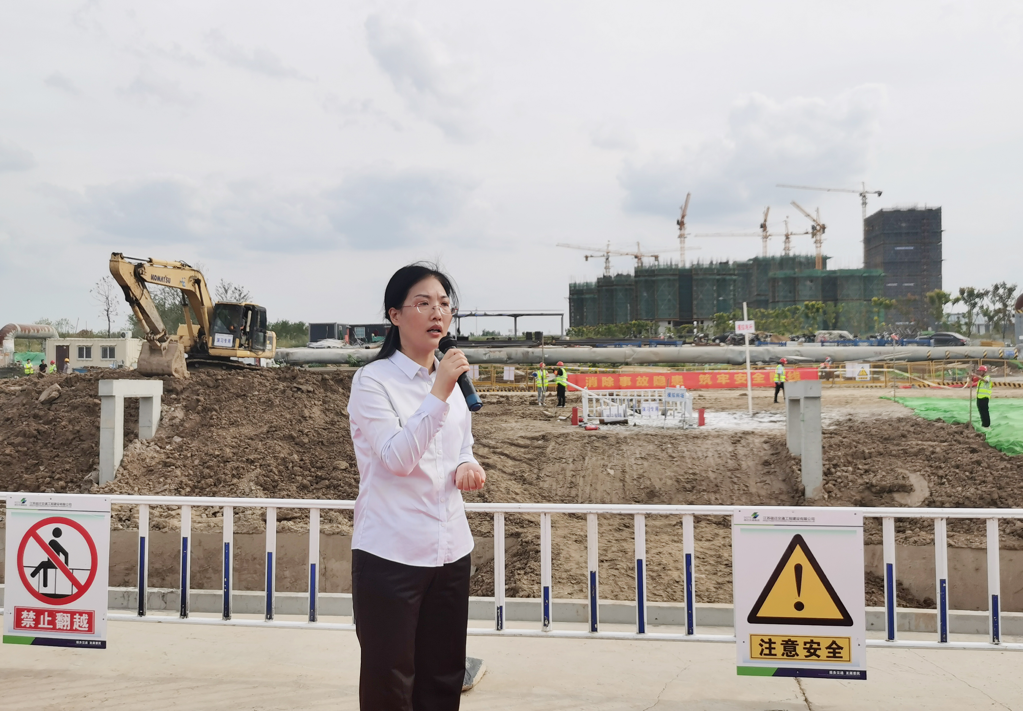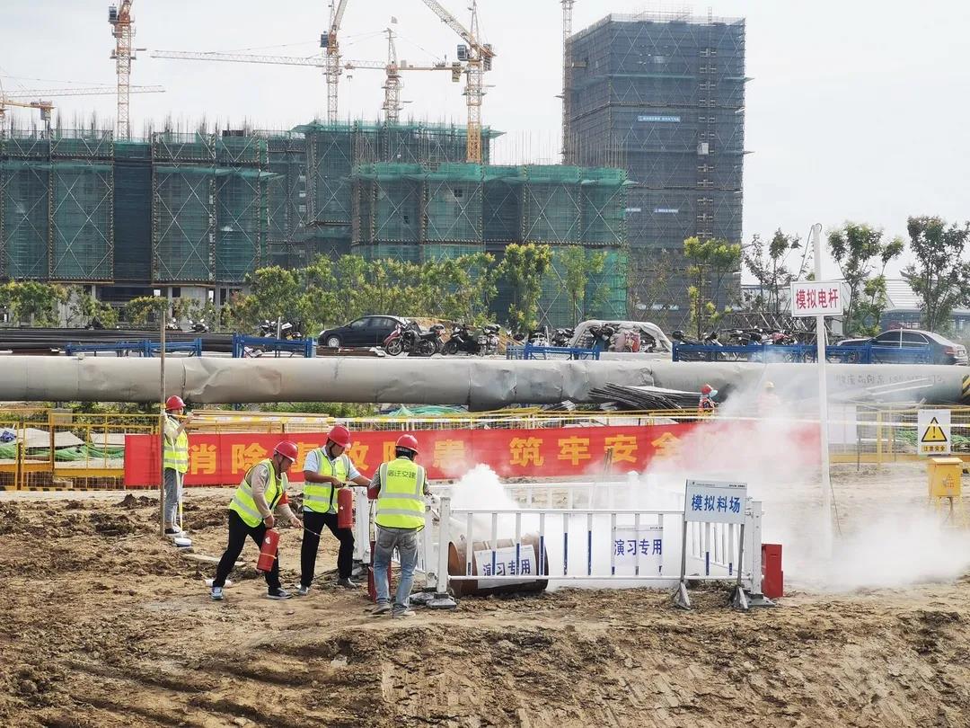 为加强在建工程安全生产事故的应急处置工作,有序、高效地组织事故救援工作,最大限度的减少人员伤亡和财产损失,9月28日,金都娱乐城 在高铁商务区市政路网工程施工现场举行综合应急演练活动。集团总经理史明霞、副总经理汪卫东出席活动。