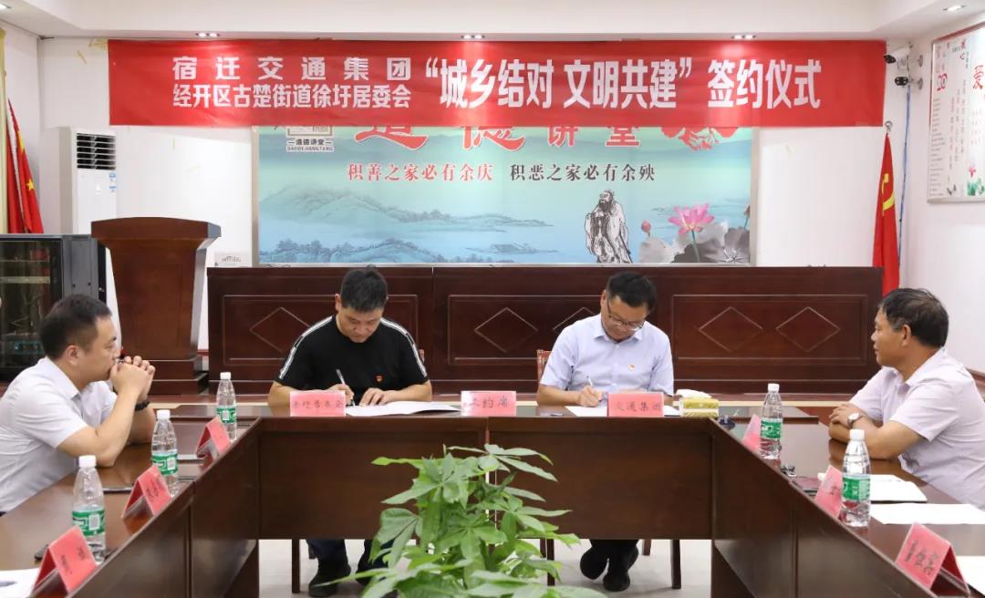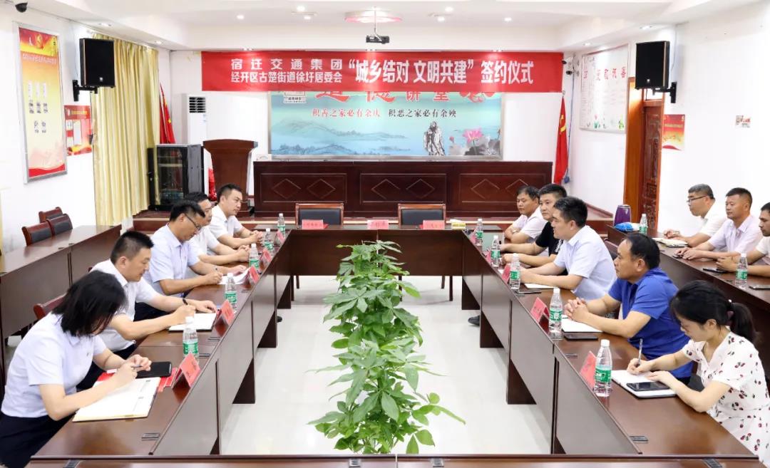 为充分发挥“江苏省文明单位”的示范带动作用,积极履行国有企业社会责任,助力宿迁城乡文明一体化建设,8月27日上午,金都娱乐城 党委副书记周斌一行来到宿迁经济技术开发区古楚街道徐圩居委会,就“城乡结对、文明共建”活动进行座谈交流,并与徐圩居委会签订了为期3年的结对共建协议。古楚街道党委书记董恒宾,徐圩居委会党总支书记、居委会主任臧士振等领导参加活动。