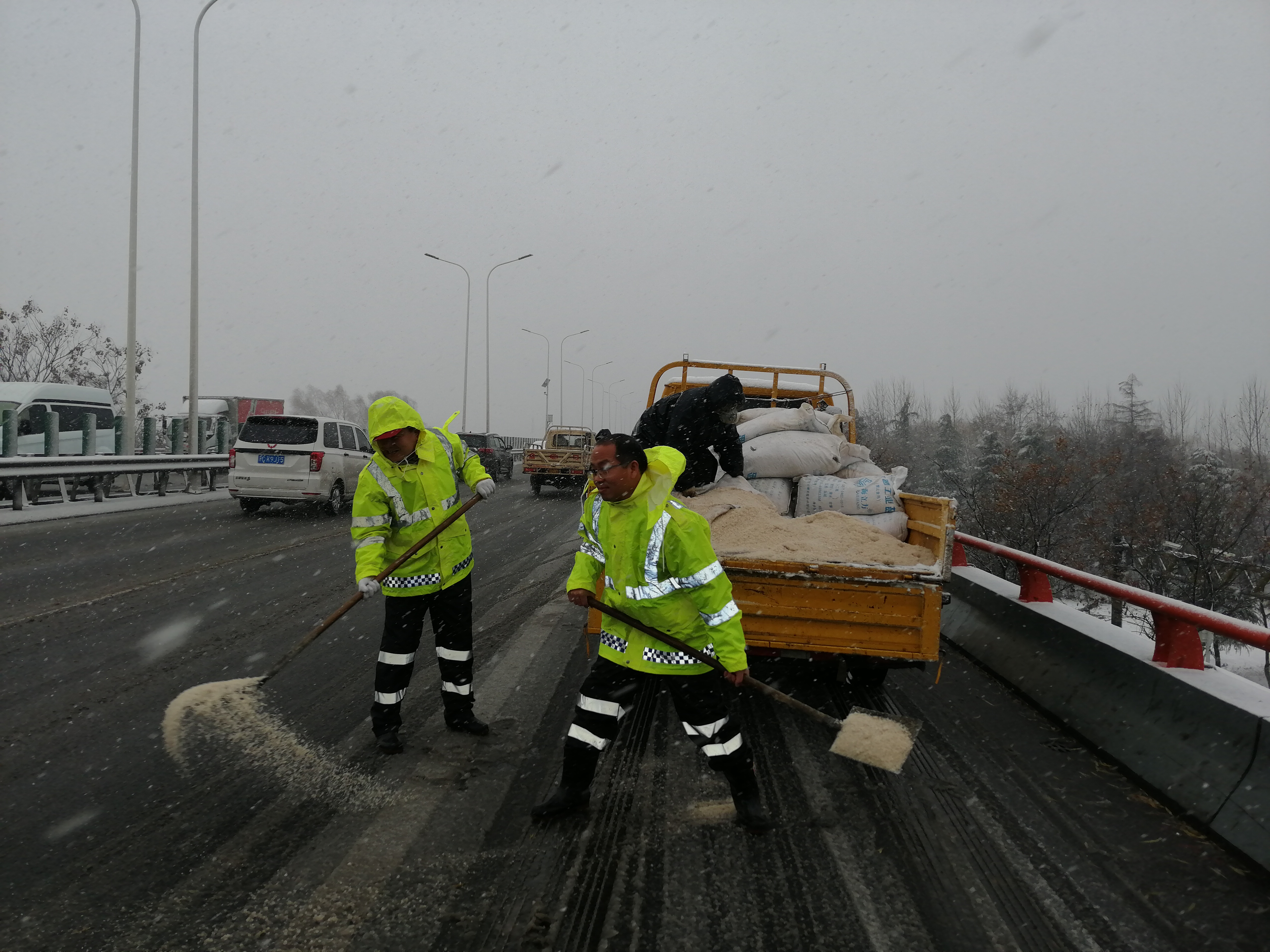 截至目前,共出动除雪装载机6台,高压水车2台,运输车辆6台,消耗融雪剂35吨、融雪盐45吨,出动除雪人员130人次,目前三号桥、七号桥、发展大桥等主要桥面无积雪、结冰。交建人始终牢记自己的初心和使命,不畏严寒、不惧风雪,用自己的坚守和努力,守护着公路交通安全畅通。