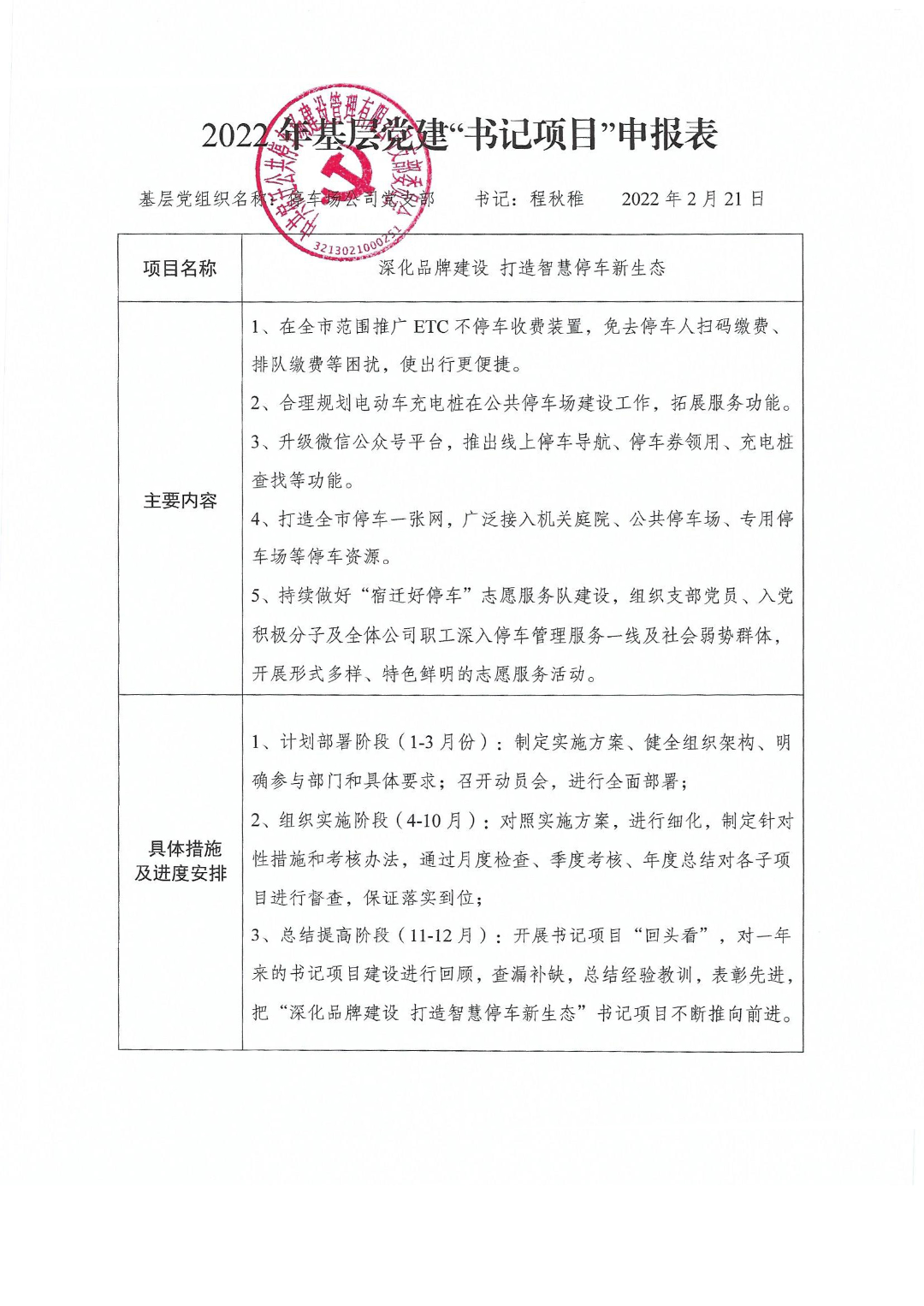 Q2:关于停车场公司党支部停车管理特色党建“书记项目”建设,请您介绍一下今年以来的主要举措?