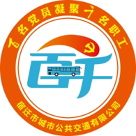 标识以方向盘的圆环为框架,间嵌公交车图形,充分彰显公交特色。党徽元素凸显党建与生产经营融合,“百”“千”字样艺术变形,寓意凝聚“以百领千”同心合力,夯实“以百领千”堡垒阵地,升华“以百领千”品牌效力。