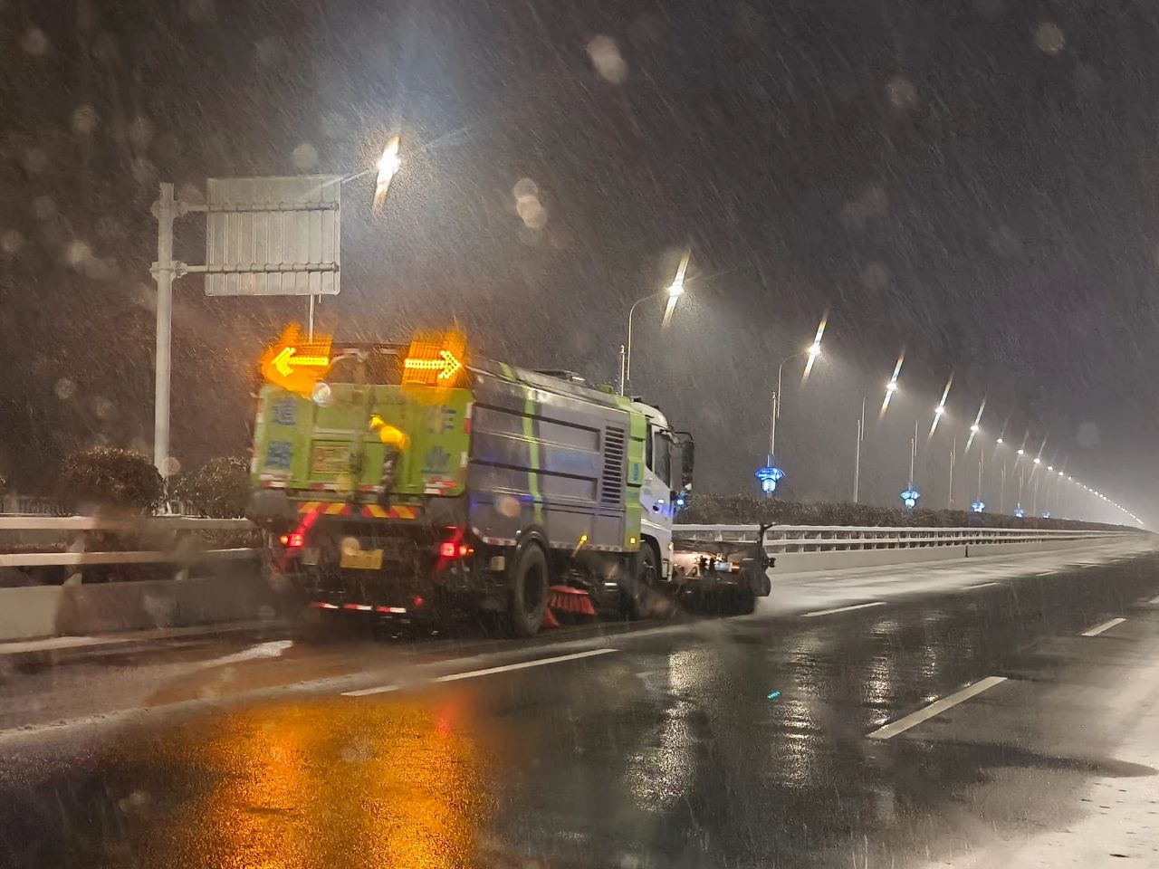 截至今早7点集团共出动除雪融冰应急保障人员120余名滚雪车、铲雪车、巡查车融雪剂撒布机等各种扫雪机械28台共消耗融雪剂约170余吨