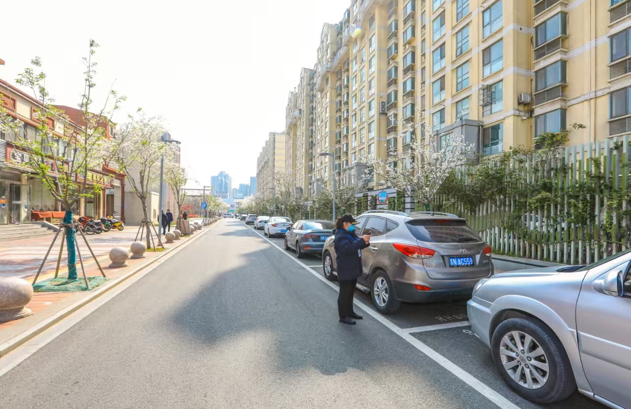 为确保免费期间市区停车秩序井然,交通科技实行精细化管理举措:实施现场柔性管理,道路泊位收费员全面转变为“停车引导员”;保障泊位高效流转,对重点区域泊位实行24小时动态监测;筑牢车辆安全防线,全面“体检”排查修补破损路面、维护照明及监控设施。