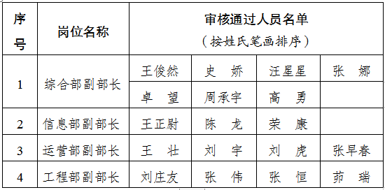 所属单位2022年度中层管理人员竞聘上岗人员名单的公示